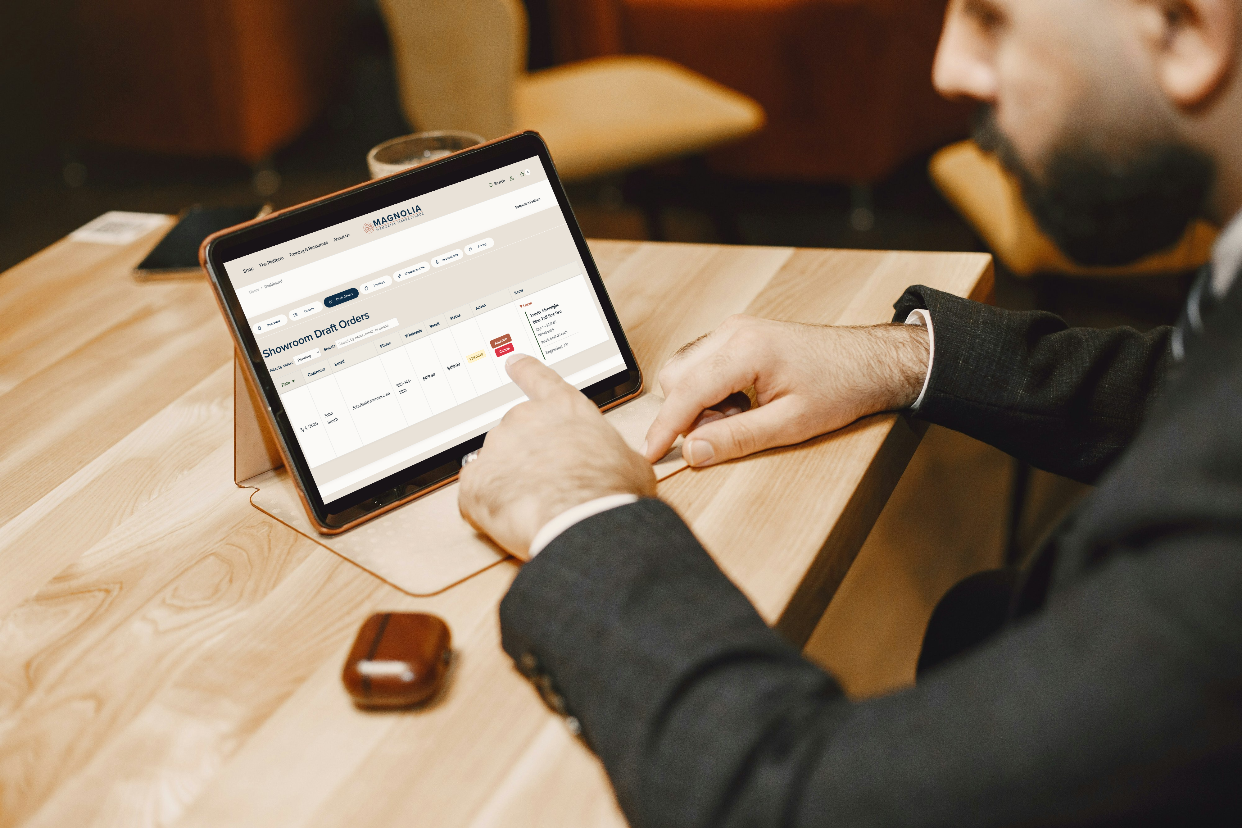 Review the details, confirm customization, and release for fulfillment. One click. Your staff handles the whole process without a single phone call or spreadsheet.