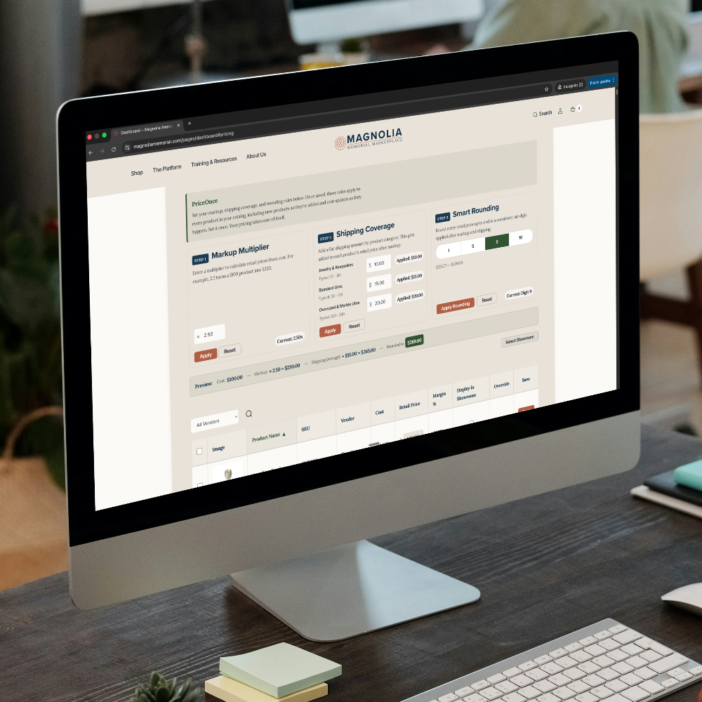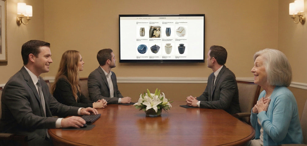 Send families a link to a shopping experience with your funeral home logo and curated products. They browse on their schedule, on any device. No app to download. No login to create. It looks and feels like you, because it is.