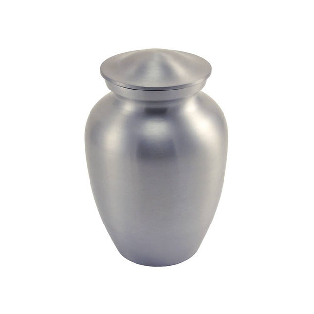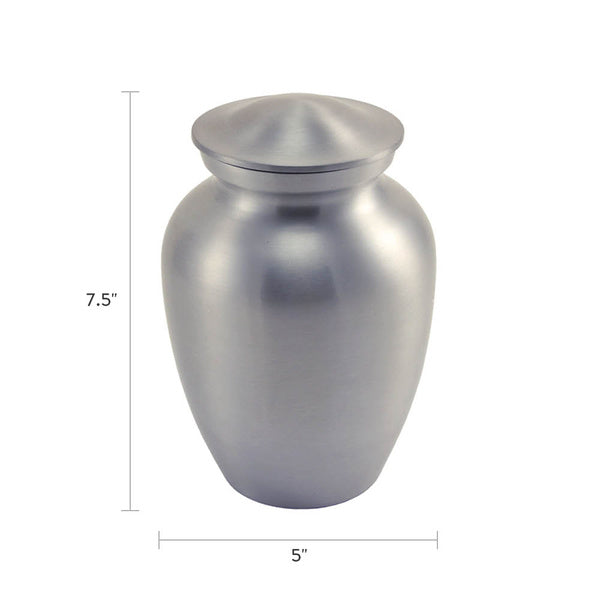 A classic cremation urn in a contemporary silver-tone finish.