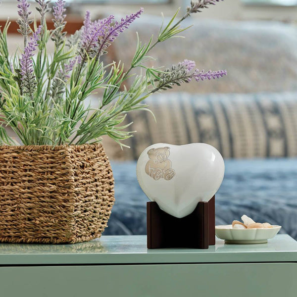- Consider adding one of our Arielle heart stands or Teddy Bear Memory chests for display.